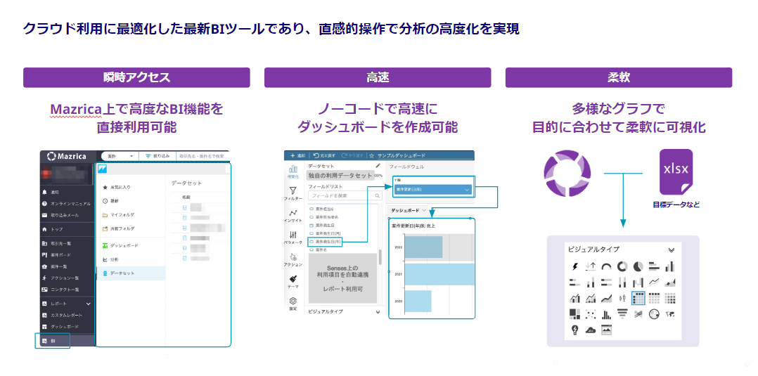 あらゆる数字の集計・分析・レポート化がノーコードで可能となるBI機能につきまして、基本概念や各社様のご状況にそったご案内を30分で実施しております。