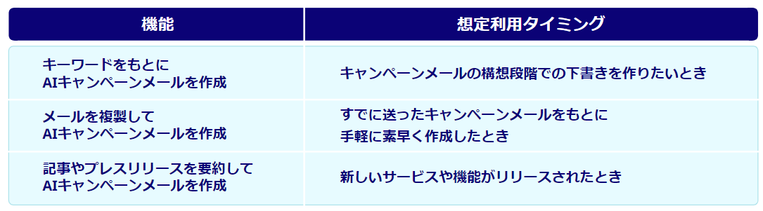 - 今回のアップデート内容 :アクション/AIキャンペーンメール