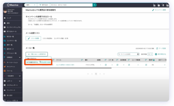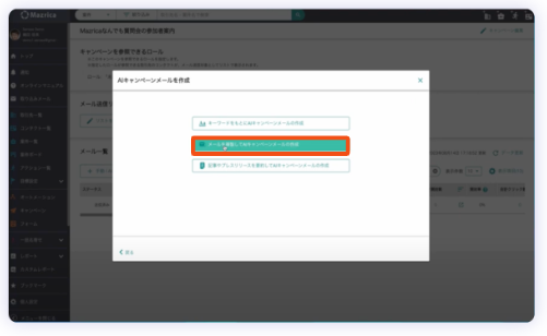 対象はキャンペーン(メール一斉配信機能)です。以下で詳細をご案内します。
