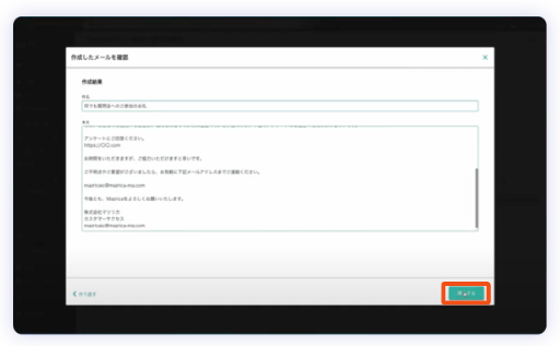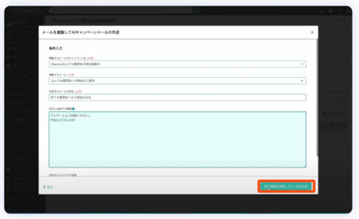 ③複製するメールを選び、件名や追加したい情報を入力し、メールを作成ボタンをクリック