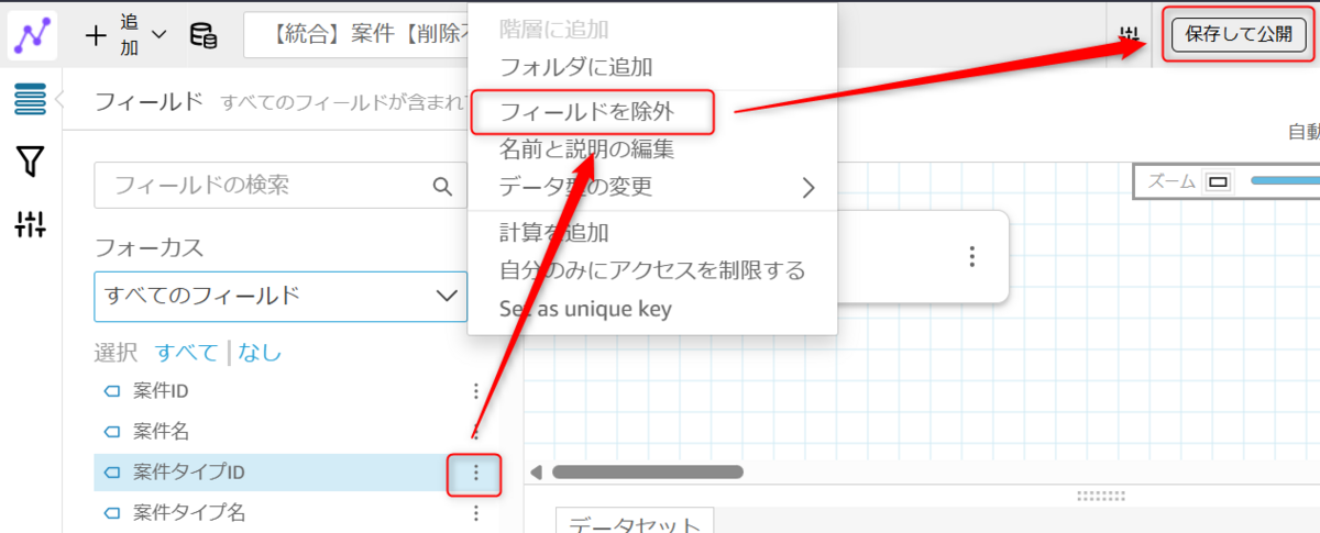 その場合、更新が失敗した対象データセットを選択し、データセットの編集→保存して公開を選択することで更新されます。