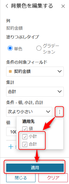 ⑫条件付き書式で設定したテキストや背景色を、合計や小計にも反映させる方法は?