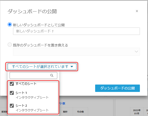 ④シートを複数作成した場合、ダッシュボードにも全て反映されてしまいます。公開したいシートを選ぶことはできますか?