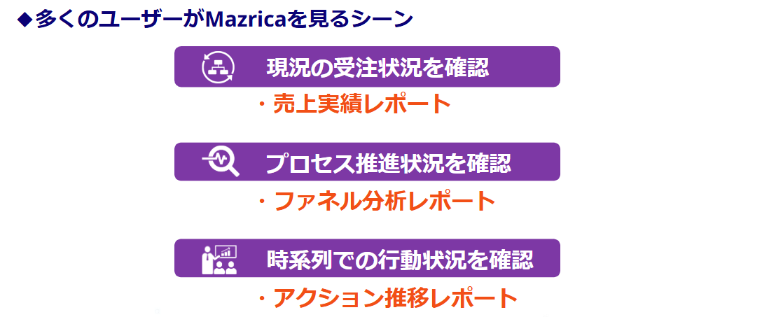 - 手元の数字の分析やMazricaで可能なレポート表示について興味がある