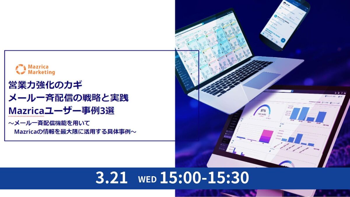 ◆開催日 2024年3月21日(木) 15-15:30時 今すぐ実践できるメールマーケティングMazricaユーザー事例3選