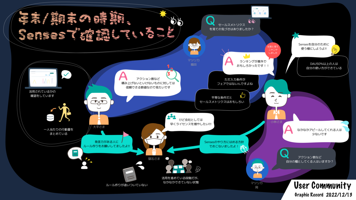 トップ > イベント情報 > 開催済み > Mazricaユーザーコミュニティイベント vol.5 開催報告 退会したユーザー 2023/04/13 05:49 Mazricaユーザーコミュニティイベント vol.5 開催報告 開催日 2022年12月13日 開催方法 オンライン(Zoom) テーマ 年末/期末の時期、Sensesで確認していること ※当日の様子をまとめたグラフィックレコーディング いいね 共有する 共有する リンクをコピー コメントする 0 件の返信 (新着順)