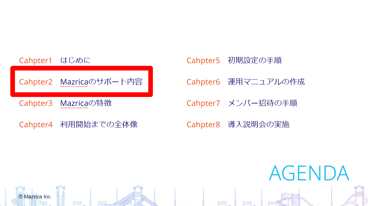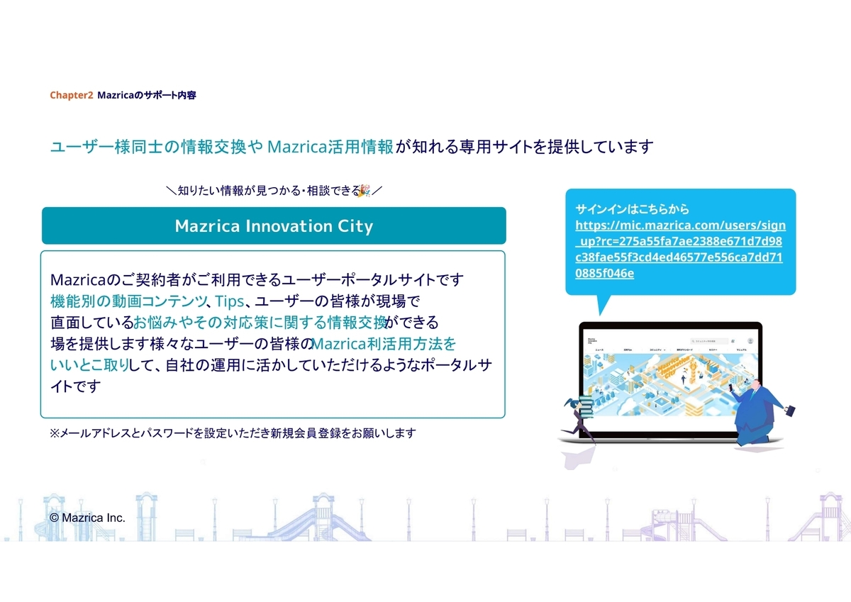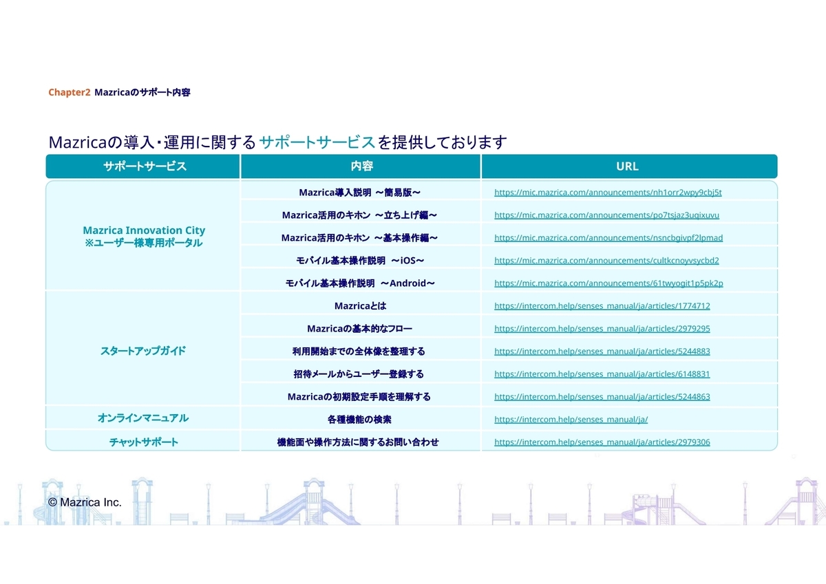 トップ > プロジェクトメンバー・管理者向け > スタートガイド②Mazricaのサポート内容 Mazrica Innovation City 運営 2023/07/07 19:28 スタートガイド②Mazricaのサポート内容 <back 第1編「はじめに」 Mazricaにはユーザーの利用をサポートする複数のコンテンツがあります。より楽しく創造性高いMazricaの運用を可能にするには、こちらの第2編「Mazricaのサポート内容」をご覧ください。 資料のダウンロードはこちらから >Next 第3編 「Mazricaの特徴」はこちら >Next 第3編 「Mazricaの特徴」はこちら いいね 共有する 共有する リンクをコピー コメントする 0 件の返信 (新着順)