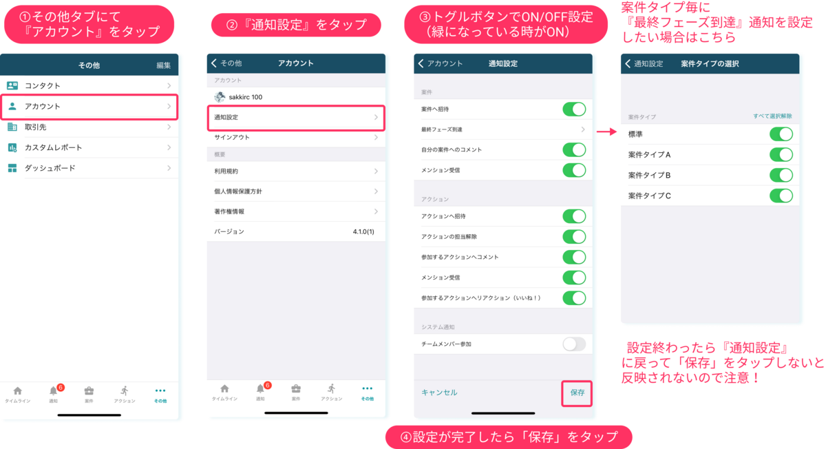 ※WEBとは基本的に連動しませんが、『最終フェーズ到達』通知の案件タイプ設定のみ連動します。まだやったことない方はぜひやってみましょう。