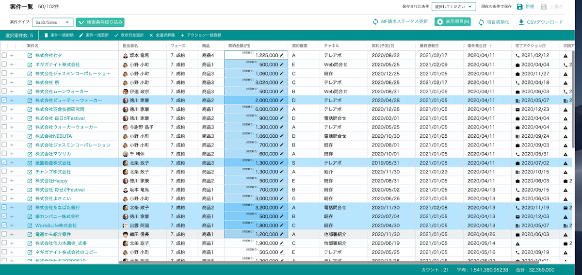 - 今月(今四半期など)受注した案件の顧客の一覧や金額の合計を把握したい
