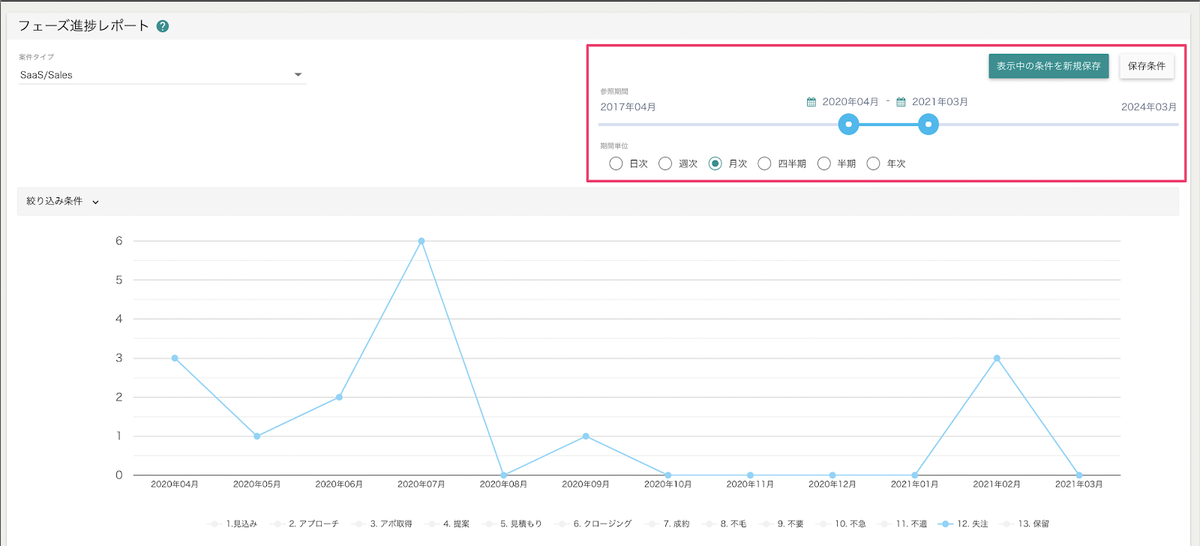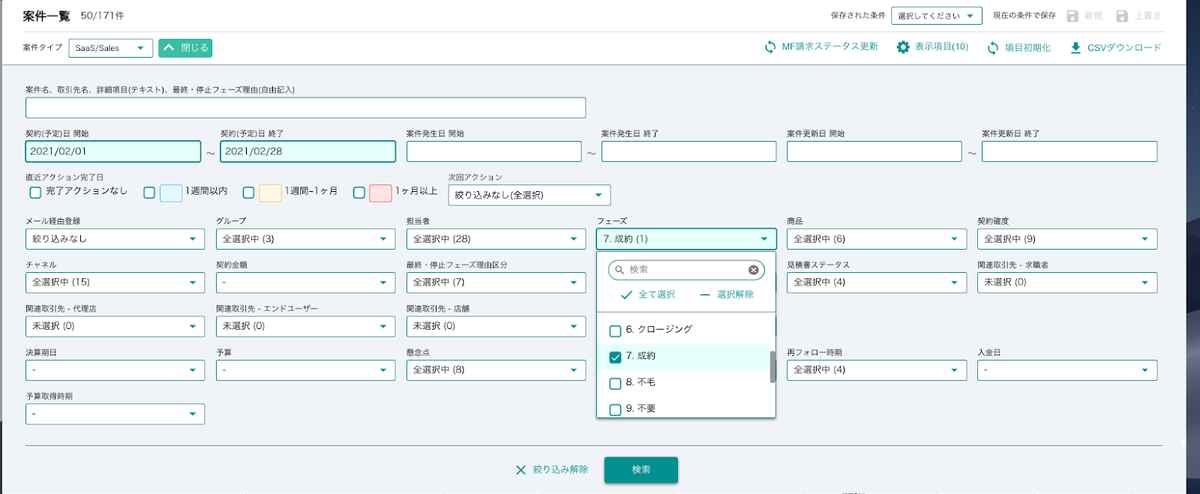 実績として集計したい”フェーズ”を絞り込み指定