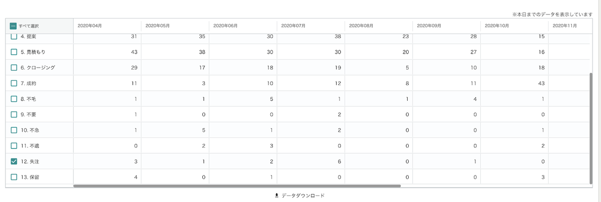 画面下部のリストから集計したい失注フェーズを指定します