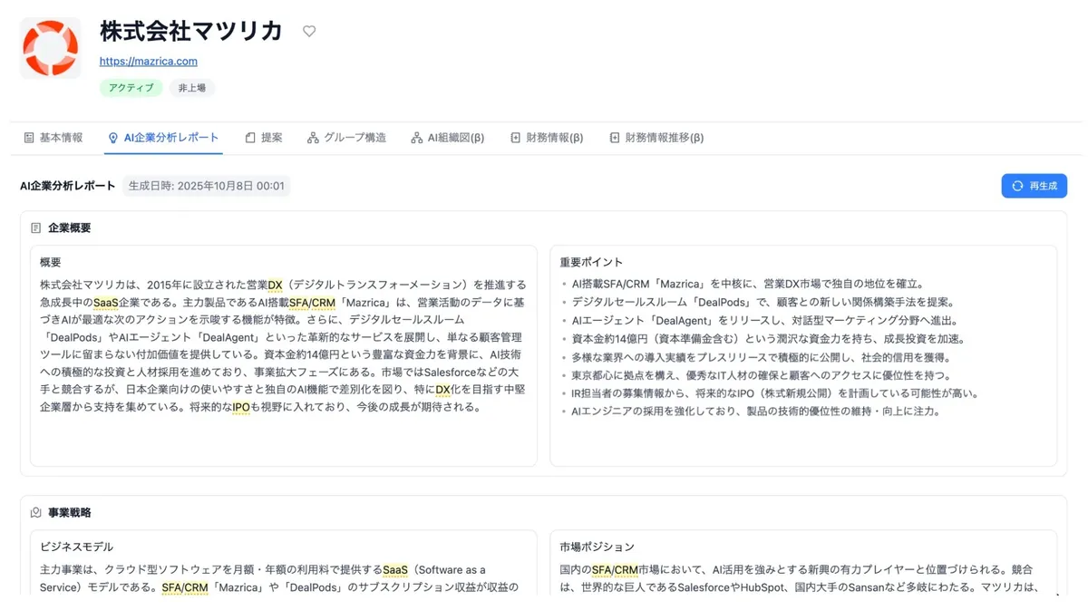 ③構造的な企業調査・「個社特化」の提案作成を誰でも1クリックで