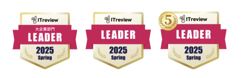 4月に発表された「ITreview Grid Award 2025 Spring」では、ITreviewに集まった約13.8万件のレビューをもとに、顧客満足度と認知度の双方が優れた製品を「Leader」として表彰、バッジが発行されています。ITreviewのLeaderは、多くの利用者から支持を得ている証であり、名誉ある称号です。
