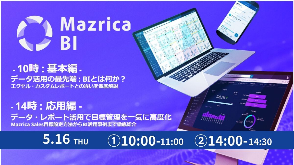 予実管理を高度化したい、経営管理で使えるダッシュボードを作りたい、Mazricaの活用を促進したい営業責任者・営業企画担当者の方へ向けたセミナーです。