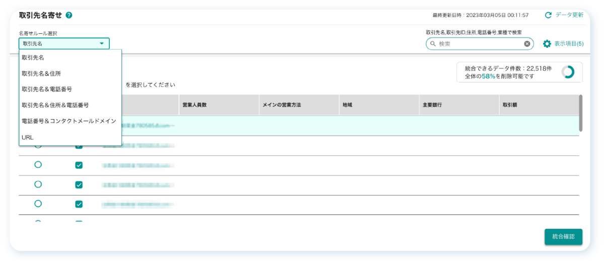 取引先データを名寄せする際、取引先に入力されたURLをキーとして名寄せの候補を抽出することができます。