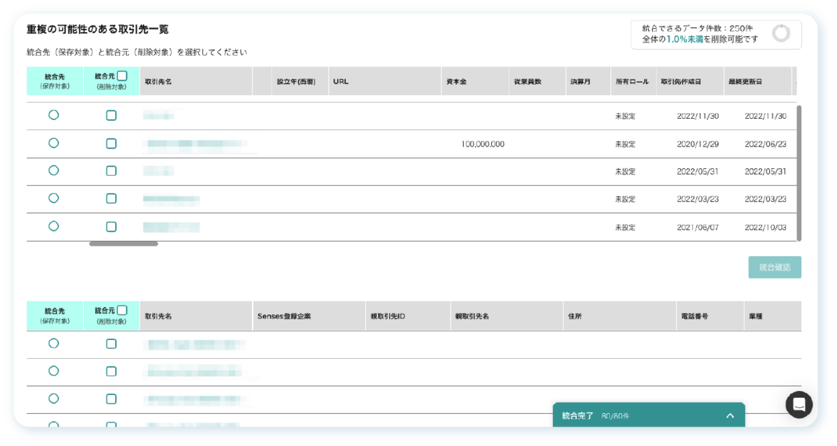 今回のアップデートによって、統合処理中であってもSensesでほかの作業が可能になり、人による名寄せ作業の工数を圧縮できます。