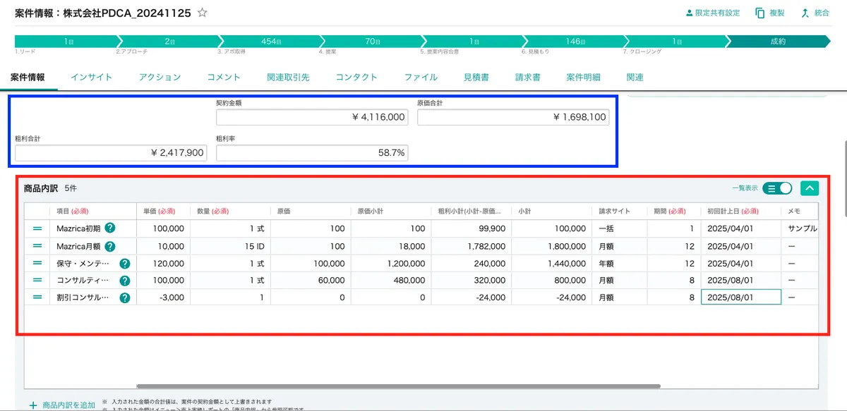 商品内訳を設定すると、案件登録時および案件更新時に商品内訳情報を入力することが可能となります
