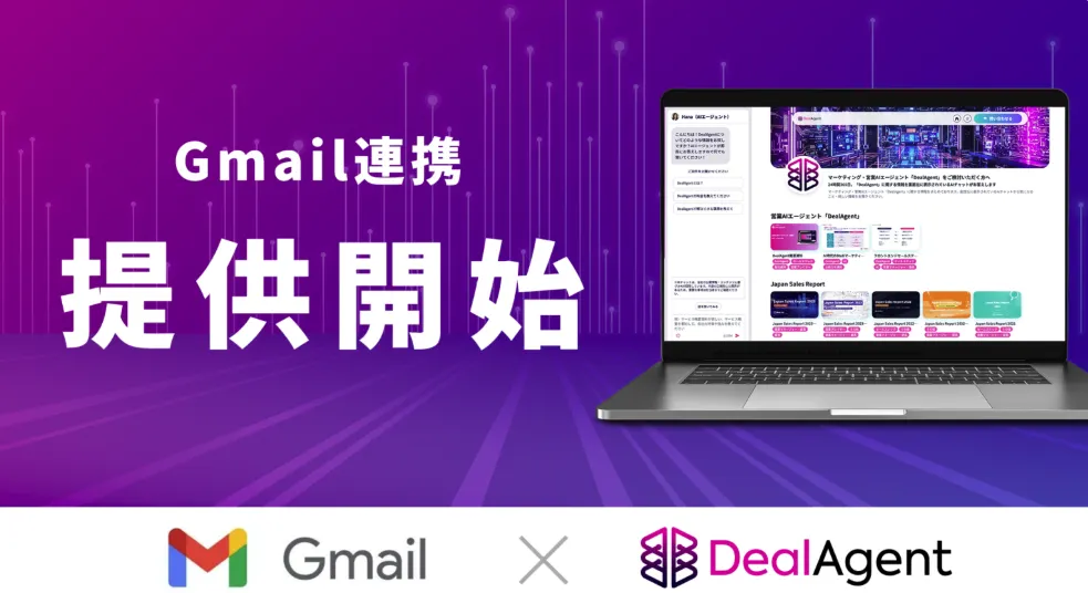 マーケティングAIエージェント「DealAgent(ディールエージェント)」は、Gmailとの機能連携を開始したことをお知らせいたします。