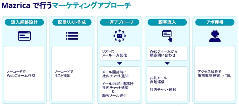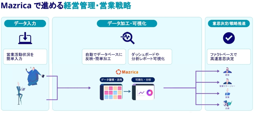 Mazricaは蓄積されたデータを用いて、業務の効率化やユーザーの創造性の向上を支援します。日々の仕事の生産性そのものを向上させるプラットフォームとしてMazricaをご利用ください。