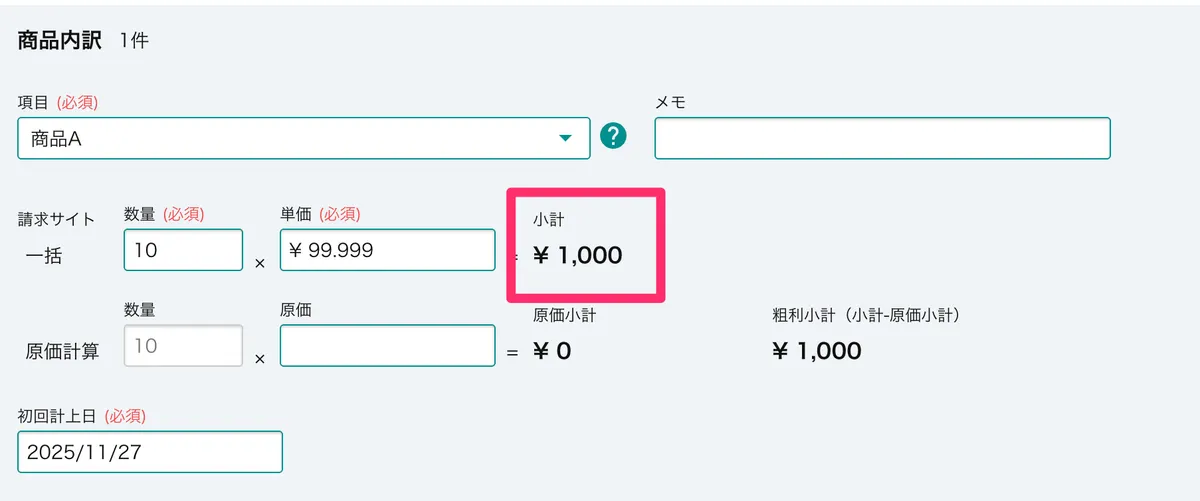 今後は、小数点以下の設定を切り上げ/四捨五入などと設定すると、小計だけでなく原価項目にも反映されるようになります。