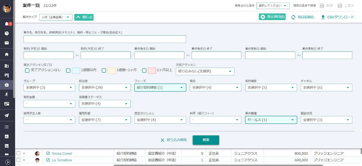 案件ボードを使って、どの候補者がどのステータスなのか簡単に確認ができます
