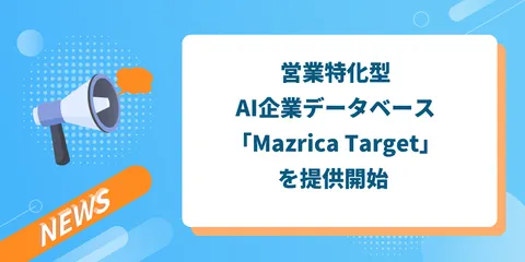 2025年11月1日、営業特化型AI企業データベース「Mazrica Target(マツリカターゲット)」の提供を開始したことをお知らせします。本プロダクトは、データ統合からリスト作成、個社特化の提案作成、活動フィードバックまでを一気通貫で支援します。「どの顧客に、どの商品を、どう話すか」をAIが迅