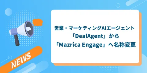 営業・マーケティングAIエージェント「DealAgent(ディールエージェント)」を「Mazrica Engage(マツリカエンゲージ)」へ名称変更したことをお知らせいたします。2025年11月時点でMazrica Engageの累計対話数は1万回を突破し、今後は当社が提唱する「AIドリブングロース