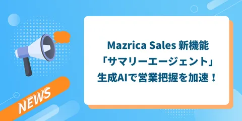 Mazricaの新機能「サマリーエージェント」を2025年6月11日にリリースしたことをお知らせします。「サマリーエージェント」は、営業担当者がMazrica Salesに入力した電話やメール、商談などの実施状況をAIが自動で要約し、案件の状況やネクストアクションの方向性を素早く把握できます。これに